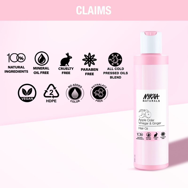 - Nykaa’s Apple Cider Vinegar & Ginger Hair Oil is formulated with 100% natural ingredients that combat dandruff and clarify the scalp of impurities