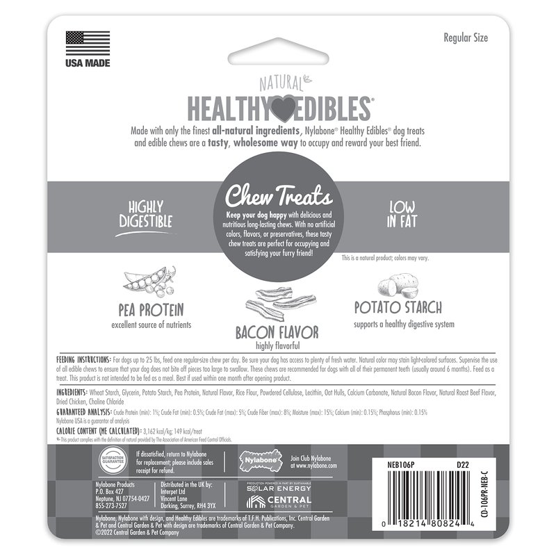 Nylabone Healthy Edibles Natural Dog Chews Long Lasting Bacon Flavor Treats for Dogs, Small/Regular (3 Count)