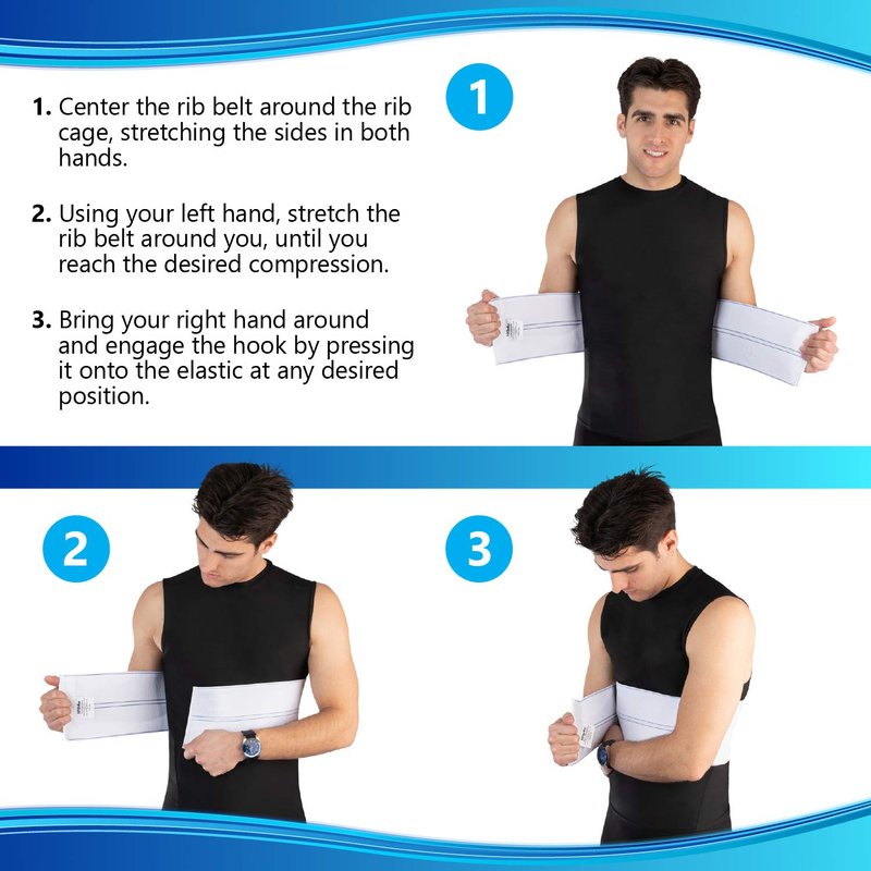 - EASY TO USE: Place the rib belt around the rib cage, holding the side with the tag in your right hand. Using your left hand, stretch the rib belt around you, until you reach the desired compression. Seal it flat by pressing the top part in anywhre you like