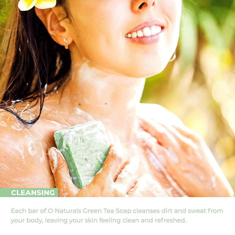- Cleansing: O Naturals Green Tea Soap cleanses dirt and sweat from your body, leaving your skin feeling clean and refreshed.