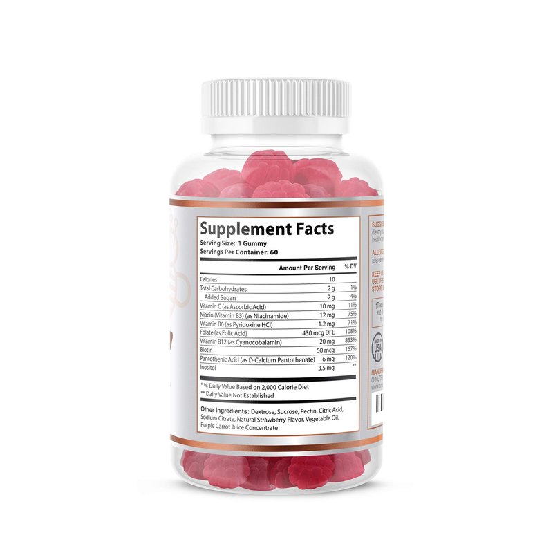 POTENT AND DELICIOUS B-COMPLEX VITAMINS :These delicious gummy are much easier to get your daily vitamin B's compared to swallowing pills. Our formula is so potent you just need ONE gummy a day! VEGETARIAN AND VEGAN FRIENDLY-These gummy are vegan friendly made from fruit-based pectin not gelatin. Vegetarian and vegan diets can increase a person’s risk of B-12 deficiency. The vitamin is present in many animal-based foods, including meat, eggs, and dairy. FULL RANGE OF BENEFITS: Improve brain health, boost cellular metabolism, improve cardiovascular health, and boost mood. NERVOUS SYSTEM & BRAIN - Men, Women and Children can benefit from supplementing their B Vitamin intake. Studies have shown B Vitamin supplementation can help to counter symptoms of deficiency including fatigue, anemia, loss of appetite, abdominal pain, muscle cramps, hair loss, and eczema. Vitamin B in gummy form is the most easy and delicious way to get your daily intake of vitamin B's. PRENATAL SUPPORT-B vitamins are particularly important during pregnancy, when a woman should take in least 400 mcg of folic acid every day. Pregnant women also need plenty of vitamin B-12. Studies show that vitamin B-12 deficiency can lead to early pregnancy loss, low birth weight, high blood pressure in the woman, and fetal abnormalities.