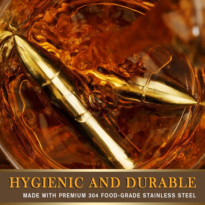 - CHILL WHISKEY WITHOUT WATERING IT DOWN: Keep your whiskey pure and uncompromised without the need for ice. Say goodbye to the risk of dilution or affecting the taste with unsightly ice cubes. We have a unique solution - 304 food grade stainless steel whiskey stones. They are safe, tasteless, odorless, and will give you a better taste experience