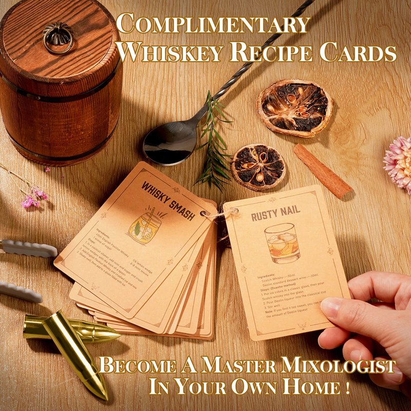 - COCKTAIL CARDS INCLUDED: In addition to enjoying the cooling whiskey stones, we also provide you with cocktail cards. These cards include a variety of classic cocktail recipes, so you can enjoy the fun of mixing your own perfect cocktail while sipping your aged whiskey