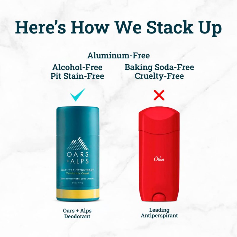 Oars + Alps Aluminum Free Deodorant for Men and Women, Dermatologist Tested and Made with Clean Ingredients, Vegan, Travel Size, California Coast, 1 Pack, 2.6 Oz