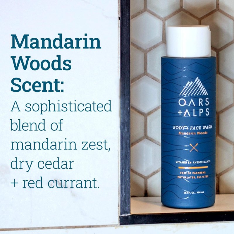 Oars + Alps Mens Moisturizing Body and Face Wash, Skin Care Infused with Vitamin E and Antioxidants, Sulfate Free, Mandarin Woods, 13.5oz, 1 Pack