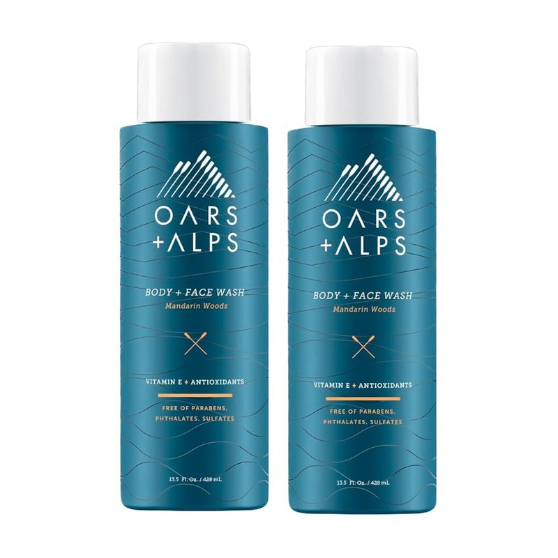 Oars + Alps Mens Moisturizing Body and Face Wash, Skin Care Infused with Vitamin E and Antioxidants, Sulfate Free, Mandarin Woods, 13.5oz, 2 Pack