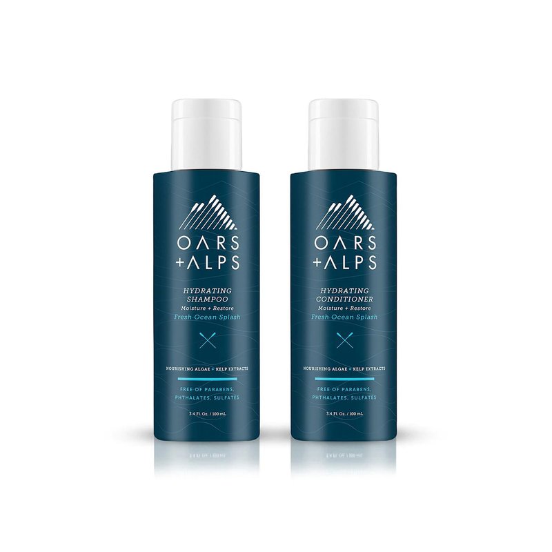 Oars + Alps Men's Sulfate Free Hair Shampoo and Conditioner Set, Infused with Kelp and Algae Extracts, Fresh Ocean Splash, Travel Size 3.4oz Each
