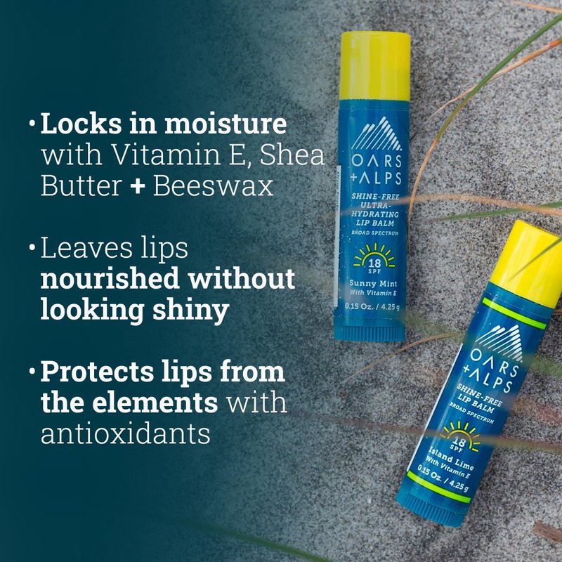 Oars + Alps Shine Free Lip Balm and SPF 18 Sunscreen, Lip Care with Island Lime Scent, Water and Sweat Resistant, 0.15 Oz Each, 3 Pack