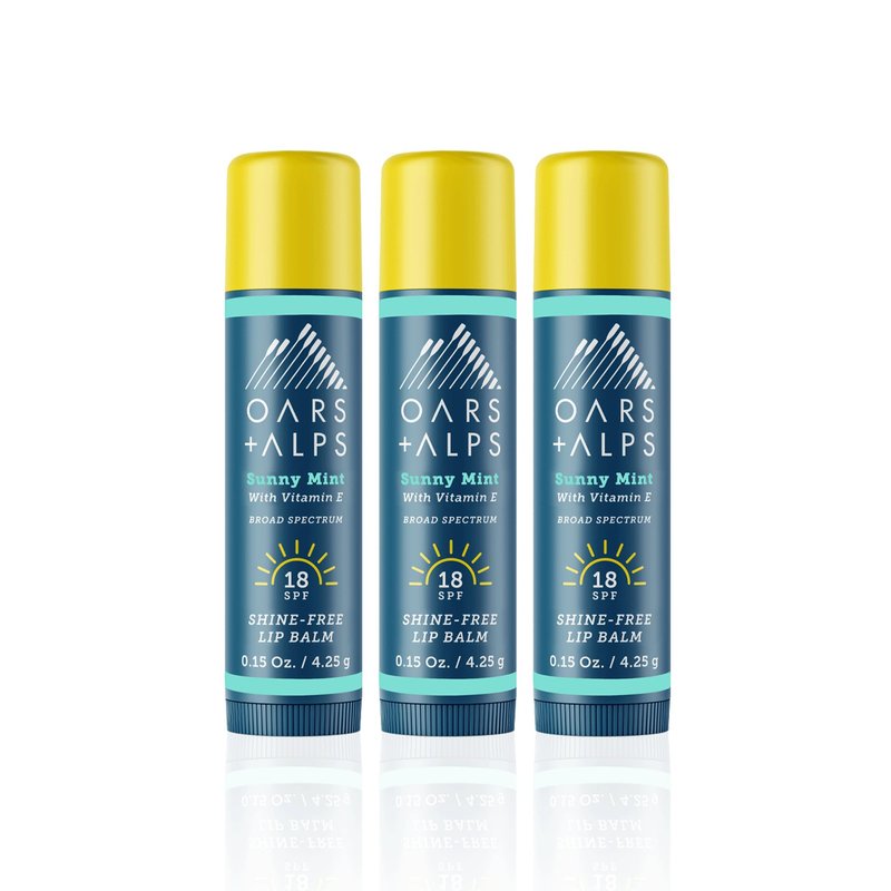 Oars + Alps Shine Free Lip Balm and SPF 18 Sunscreen, Lip Care with Sunny Mint Scent, Water and Sweat Resistant, 0.15 Oz Each, 3 Pack