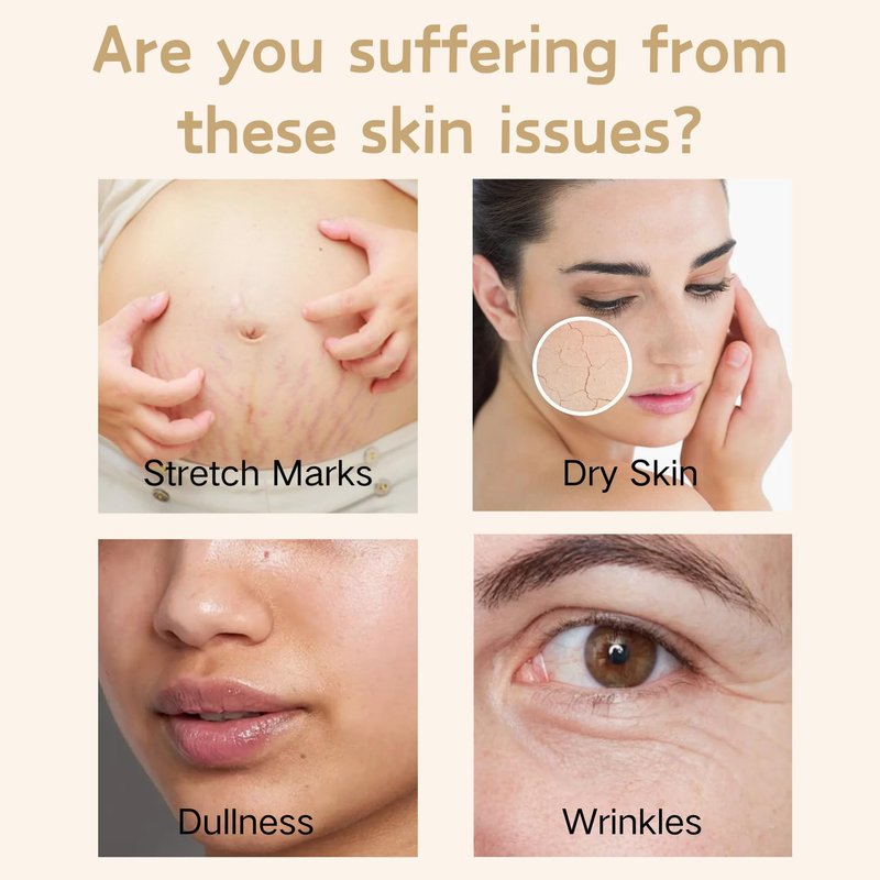 Anti-Aging: Promotes collagen production, reduces stretch marks, fine lines and wrinkles, improving skin elasticity and firmness.