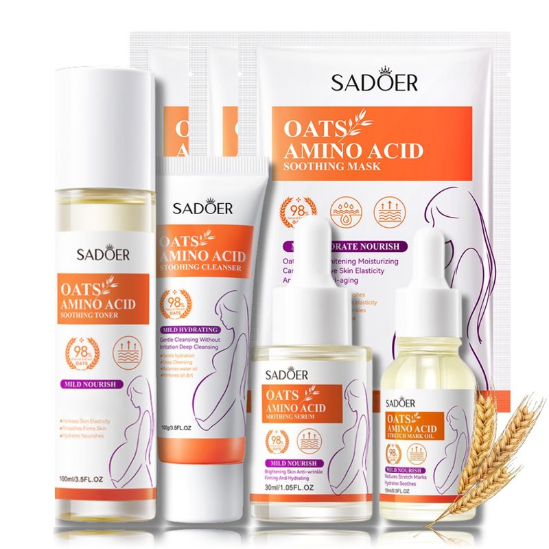 - 【Oats Amino Acid Skin Care Set】 The Pregnancy Must Haves skincare kits hydrating includes cleanser face wash, toner, stretch maek oil, serum and 3pcs facial masks; Our skincare kits women gifts set moisturzing is designed to complete the daily skincare routine for moms, helping you to have healthy, youthful skin.