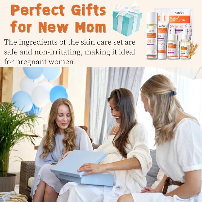 This oats amino acid skin care set anti-wrinkle is a must-have for pregnant women and contains a variety of skincare products designed specifically for pregnant women to meet the special needs of the skin during pregnancy. The postpartum gifts for mom beauty and personal care products firming can provide deep hydration and nourishment, and smoothing stretch marks, fine lines and wrinkles. The personal care set elastic is perfect to be gifts for mom.