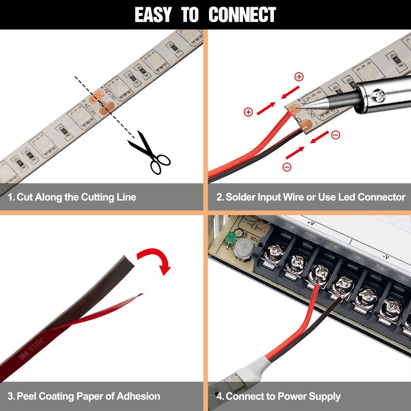 - 3M Adhesive Stick Back: Keeping the waterproof LED light strips 12v marine in space that you set up. Strong and durable.