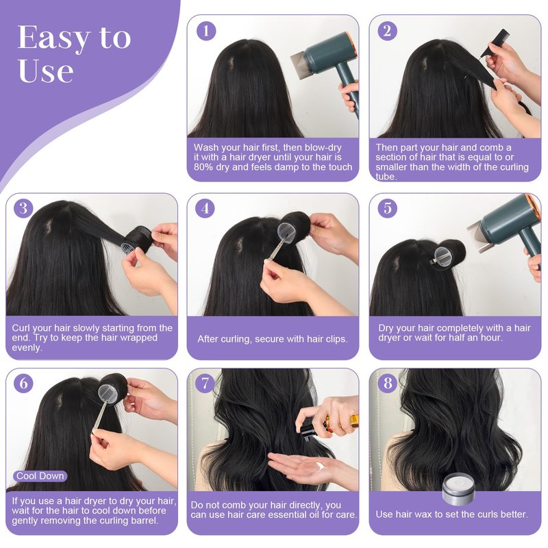 - Use Tips: Part your hair, keep it slightly moist, wind the ends around the roller and slowly roll it up, then secure it with a clip. You can also use a hair dryer to style it. After blow-drying, be sure to gently remove it in the direction of the curls without pulling hard.