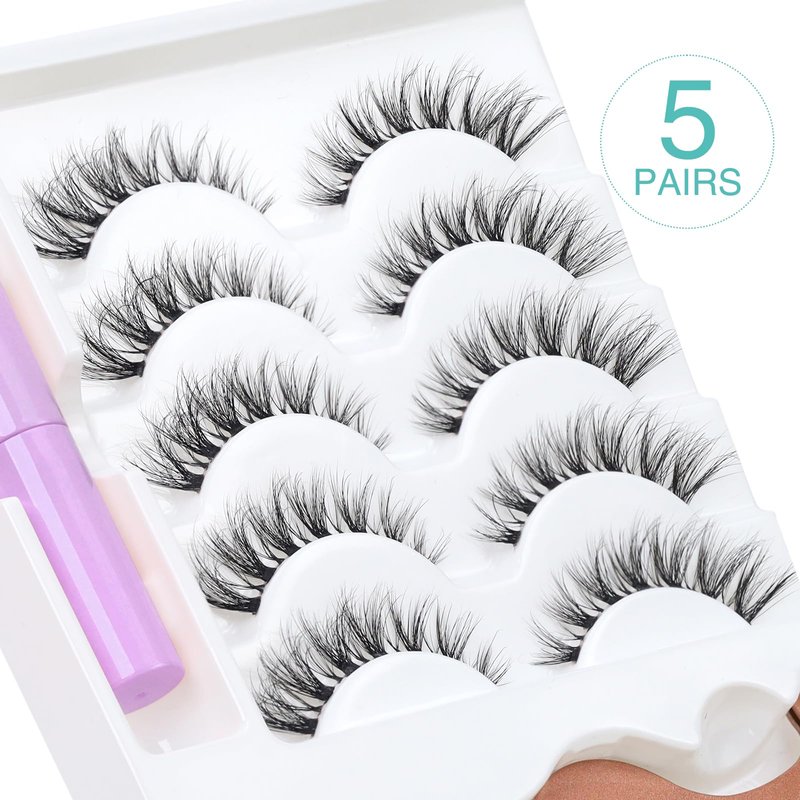 - Lashes Pack: We have 5 different styles of false eyelashes for you to choose from, 5 pairs per package Natural False Eyelashes Clear Strips Natural Look With Eyelash Adhesive and Helping Tools.