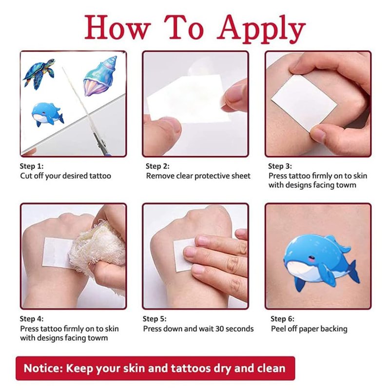- Easy to Use: This temporary face tattoos are very simple to use; You can cut out the sea life patterns you choose, then peel off the film on their surface, stick them face down on your skin, and then peel off the white backing paper, then you can see cute patterns appear on your skin quickly; When you want to change a tattoo sticker, this tattoo sticker can also be easily removed with cosmetic oil and other products, saving your time and energy.