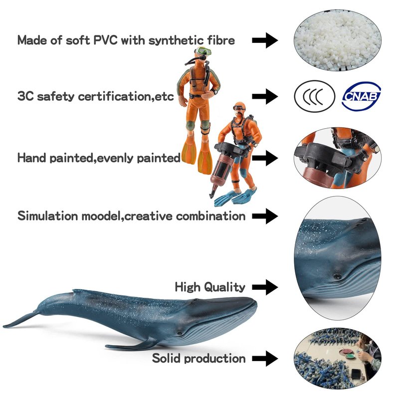 Ocean Sea Marine Animal Figure Toys Playsets 3 PCS Diver Blue Whale Model Toy Desktop Decoration Collection Party Favors Toys for Boys Girls Kids