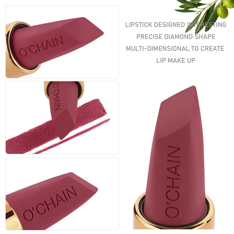 - Matte Lipstick Formula: O'CHAIN red lipstick is enriched with refined olive oil, jojoba oil, hyaluronic acid, and vitamin E. This combination provides nourishing, moisturizing, and antioxidant benefits, delivering a matte finish that won’t dry out your lips.