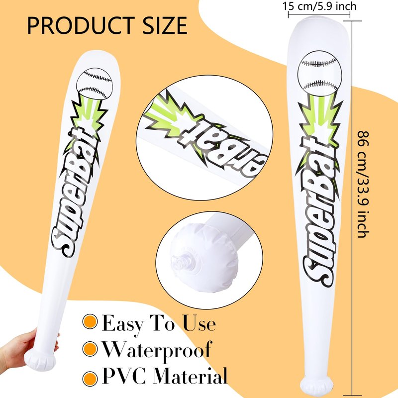 - 【Suitable for Many Occasions】: The inflatable baseball bats bulk are necessaries for baseball party game, suitable for summer holiday party, pool party, summer beach theme parties, bbq, activities, baseball theme birthday party, swimming pool and so on, add a more joyful atmosphere to the party.