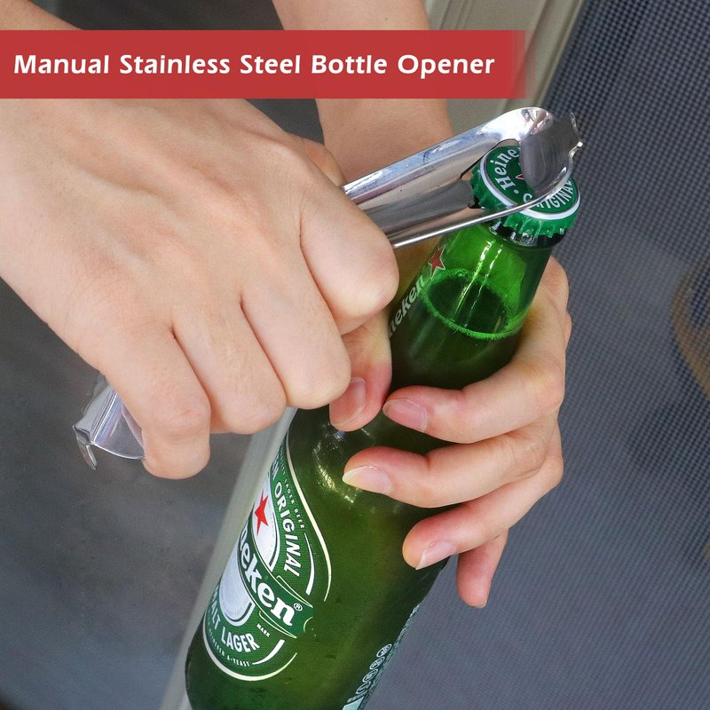- 【Four Ways of Use】 ① Universal Lid Opener, which can open various canning lids. ② Jar Tumbler Bottle Top Remover, can easily remove tightly closed pressure mason jar top lids. ③ Bottle Opener, which can open various bottle caps. ④ Small Canning Lids Opener, insert the tail pin can release the air from the tightly closed small lid, relieve the pressure, and then the lid can be easily opened by hand.