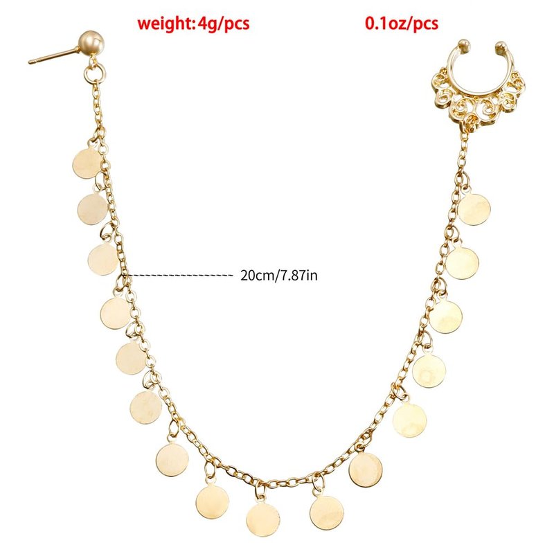 Octwine Women Tassels Nose Rings Earrings Chain Hoops Earrings Chain Fake Nose Ring Chain Non Piercing Nose Rings Earrings to Dangle Halloween Earring for Women (Gold Sequin)