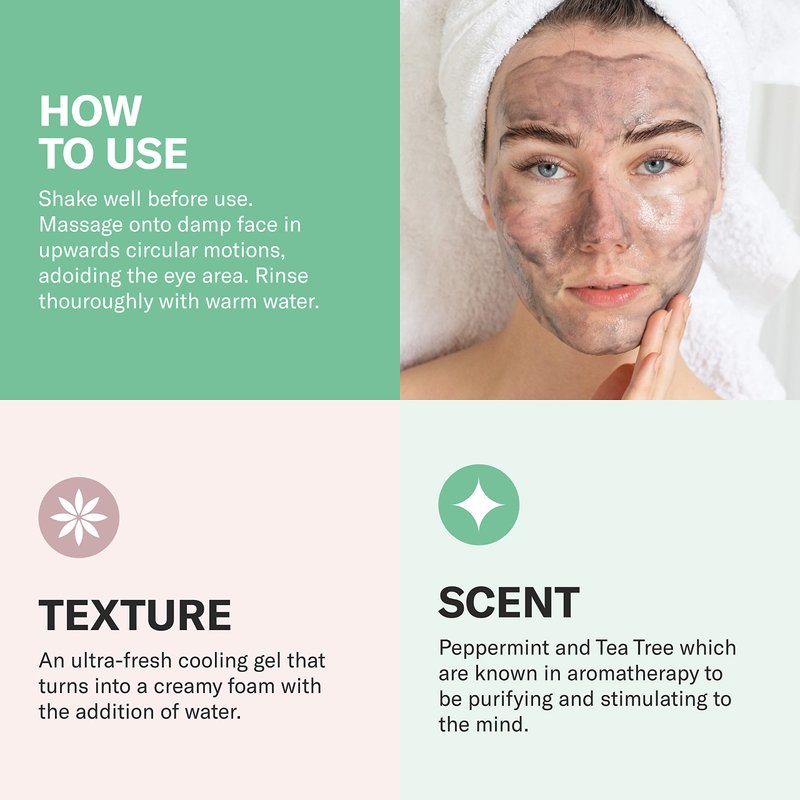 - Ingredient Power: Clarify and purify skin with Activated Charcoal, mineral-rich Rhassoul Clay, moisture-protecting Apple Amino Acids, antioxidant-rich Rosemary Extract, refreshing Peppermint, and clarifying Tea Tree.