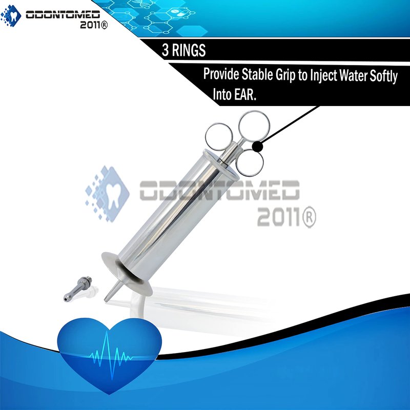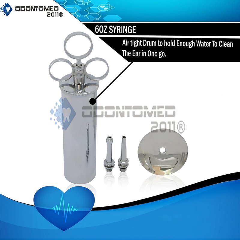 - 💉 6 OZ METAL EAR SYRINGE: The OdontoMed2011 Metal Ear Syringe is an easy and safe tool for the removal of cerumen wax from the ear canal of patients. It is a valuable addition to medical offices, hospitals, and homes. An eco friendly choice, it is designed for precise and seamless applications that keep the patient at ease.