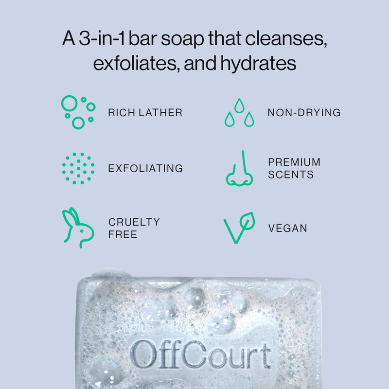 - Premium Unisex Fragrance: Your OffCourt exfoliating bar soap enhances your shower experience with a fresh scent that’s never overwhelming ;Key notes: Italian Lemon, Green Apple, Grapefruit, Mandarin, Sea Breeze, Green Violet Leaves, Cedarwood, Patchouli, White Musk