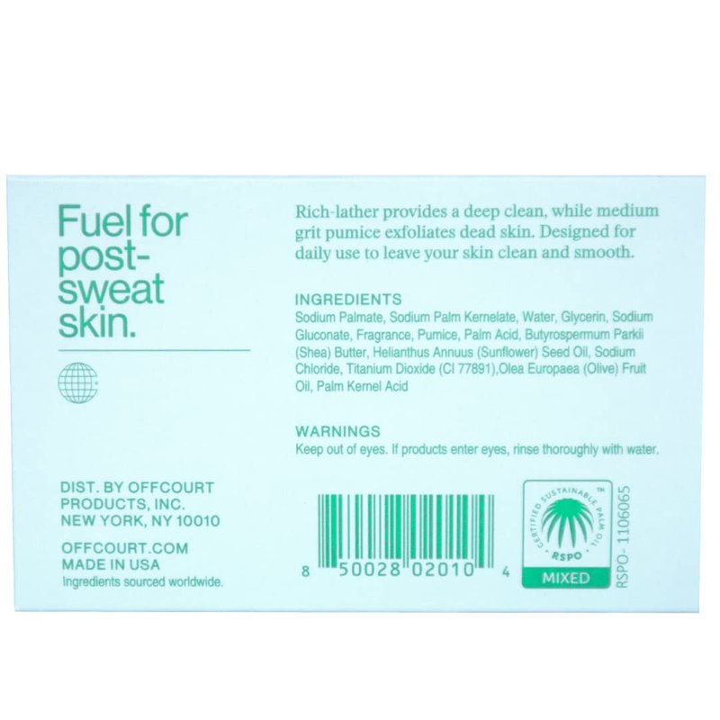 Cleanse & Revitalize Your Skin with This 3-in-1 Men’s and Women's Body Soap – Made in the USA, Designed for Daily Use & Inspired by Our Acclaimed Coconut Water + Sandalwood Body Spray. When you've worked up a mighty sweat, you need more than just ordinary soap. You need OffCourt Exfoliating Bar Soap. This lather-rich soap removes sweat, germs, and grime, but that's just the bare beginning. It also exfoliates, hydrates & nourishes your skin, for a bracing whole-body cleanse that leaves you feeling like a new man. The Secret's the Proprietary Formula Featuring Our: Planet-friendly palm-oil base, which quickly creates a rich lather for easy allover cleansing. Medium-grit mixture of salt & white pumice particles – strong enough to scrub away dead skin cells yet mild enough for every day. Non-drying blend of pure shea butter, olive oil & sunflower seed extract – loaded with vital nutrients & moisturizing emollients. Mingled scents of deep-woodsy sandalwood with notes of bergamot, Meyer lemon, black pepper, geranium, cedarwood & patchouli. It All Adds up to the Ultimate Shower Experience – An Awesome Way to Relax & Refresh After Strenuous Exercise. What's more, all ingredients are responsibly sourced, so you can feel good about your purchase. Here's a tip for the gals: This premium soap makes a great gift for birthdays & holidays – super stocking stuffer, too.
