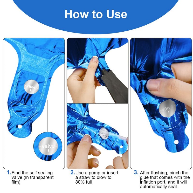 - How to Use: Comes with a straw, which supports helium or air. After filling, the aluminum foil balloon valve will automatically close. It is recommended to pinch the self-sealing valve to prevent air leakage. These number balloons have holes at the top and can be tied or hung with ribbon; the number jumbo balloons can also be attached to walls, windows, or doors. Deflate with straw after party and store for future use.