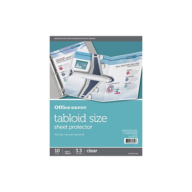 Office Depot Tabloid-Size Sheet Protectors, 11in. x 17in., Clear, Pack of 10, 697146