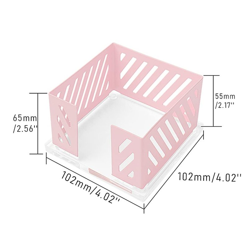 Dimension: The edge size of note pad dispenser is 102mm x 102mm x 65mm(4.02" x 4.02" x 2.56"), holder inner size is 93mm x 93mm x55mm(3.66" x 3.66" x 2.17")