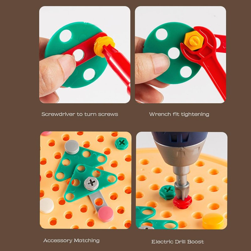 Magic Montessori Play Toolbox, Magic Montessori Play Toolbox Bear, 204 PCS Creative Mosaic Puzzle Toy with Electric Drill Screw Tool Set, Creative Puzzle Toy Montessori Play Toolbox with Drill