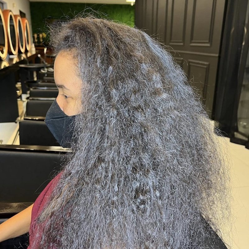 - STEP 4 - Dry your hair with a Dryer and use the hair straightener strand by strand thin throughout the length of your hair of 5/10x - STEP 5 - Now you have a hair for 12 weeks* without frizz.