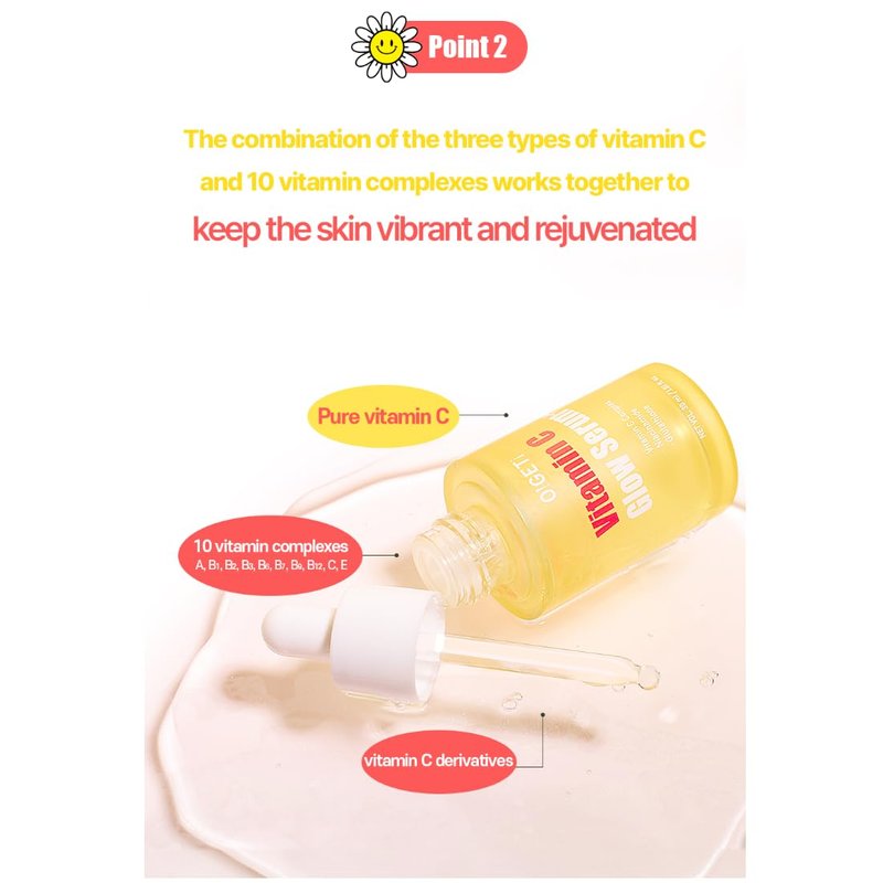 - Triple Vitamin C and 10 Vitamin Complexes: The serum features a dynamic combination of three types of Vitamin C and 10 vitamin complexes that synergistically work to maintain vibrant and rejuvenated skin. It effectively combats fatigue from external stimuli and aging, revitalizing and clarifying the complexion.