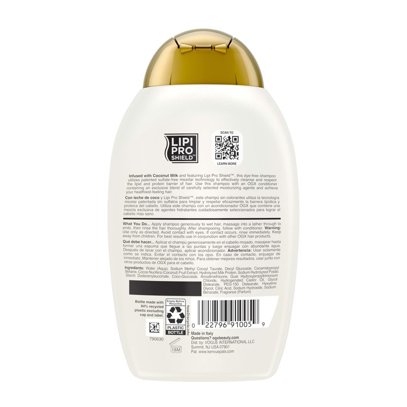 OGX Nourishing + Coconut Milk Moisturizing Shampoo, Hydrating & Restoring Shampoo Moisturizes for Soft Hair After the First Use, Paraben-Free, Sulfate-Free Surfactants, 13 fl. oz
