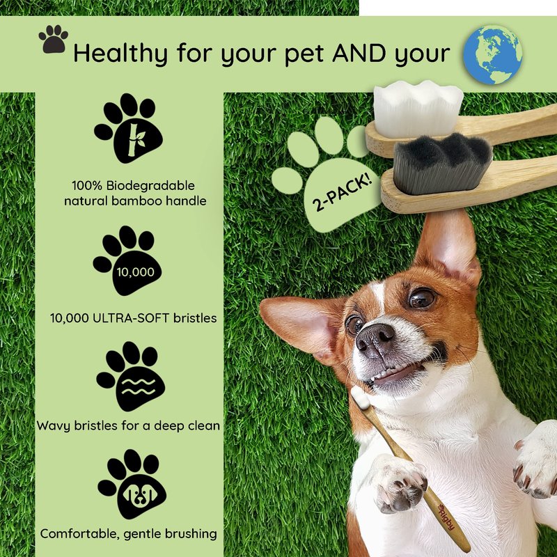 OH RIGBY Dog Toothbrush- 10,000 Ultra-Soft Bristles for Sensitive Pet Teeth & Gums- Natural Bamboo Toothbrush for Comfortable, Gentle Deep Cleaning