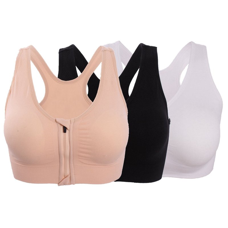 ohlyah Women's Zipper Front Closure Sports Bra Racerback Yoga Bras 3 Pack XL