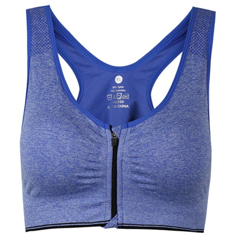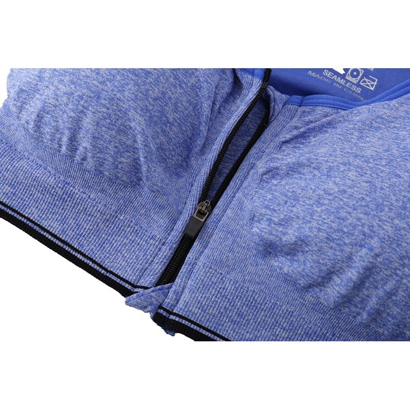 ohlyah Women's Zipper Front Closure Sports Bra Racerback Yoga Bras Blue L