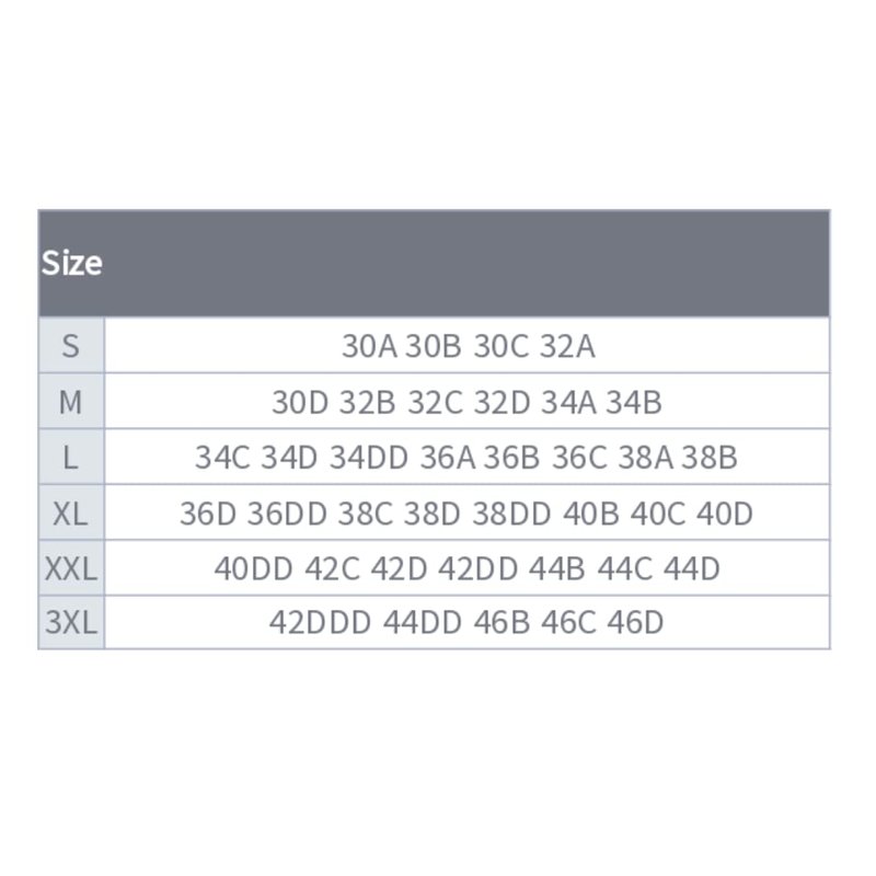 XL: 36D 36DD 38C 38D 38DD 40B 40C 40D