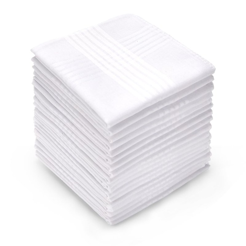 Ohuhu Men's Cotton Handkerchiefs, 18 Pack 100% Soft Cotton Handkerchief, White Hankies Pocket Square for Men, 16''x16''