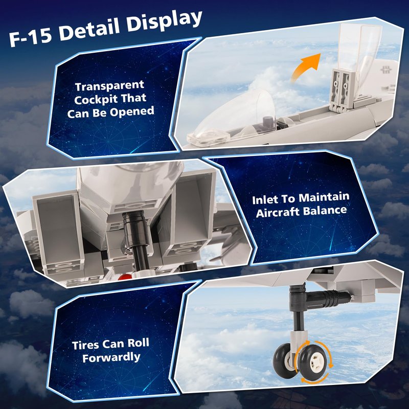 - ★【Features】Build your own F-15 Eagle Fighter Jet with this building block set. Build and explore your own military world.