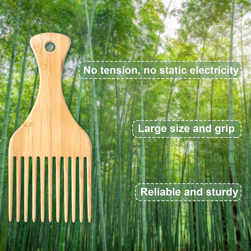 - 【Quality Material】: Made of quality bamboo material, these afro pick is anti-static, frizz-free, and glides through hair easily without pulling or snagging, leaving your hair looking sleek and smooth.