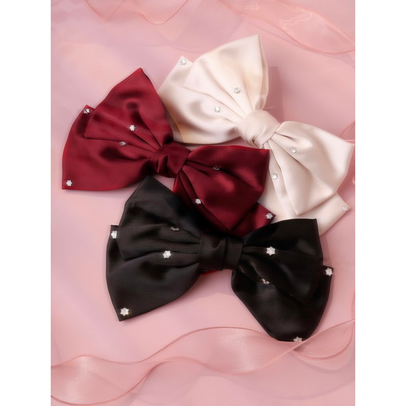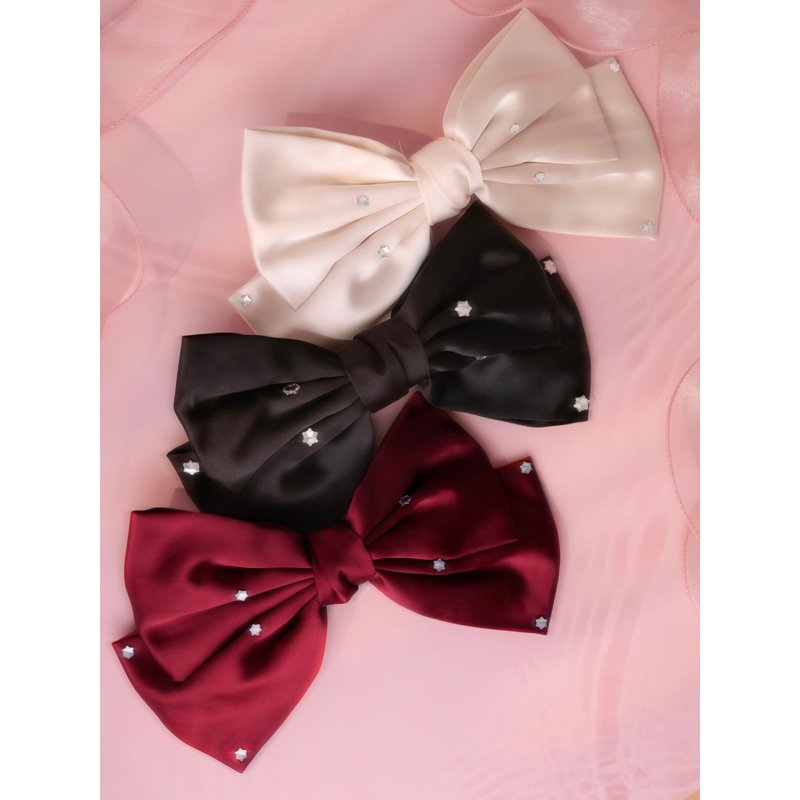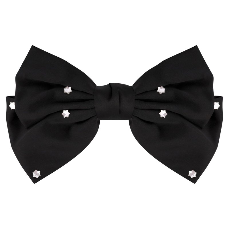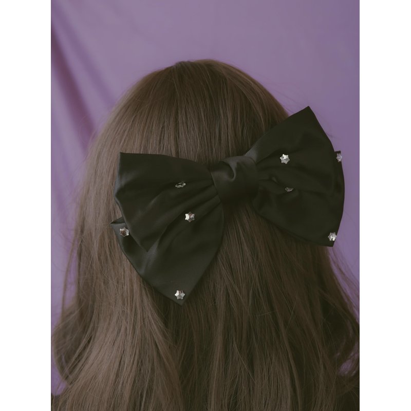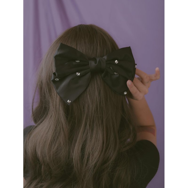 - French barrette clip 3.5", silk fabrication, oversized bow with sparkling star details