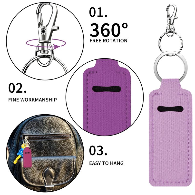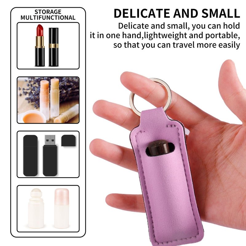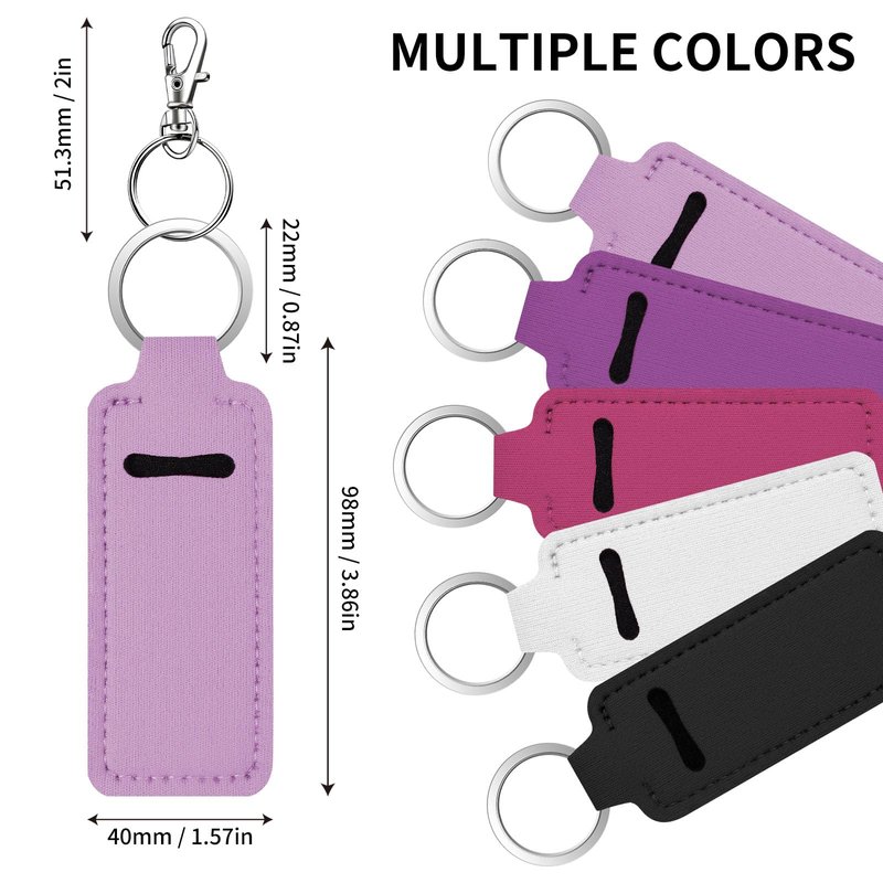 - Chapstick Holder Key Chain: Made with 2mm thick neoprene fabric, our chapstick keychain holder is light and compact, measuring only 1.57 x 3.85 inches. It's ideal for storing a variety of standard-sized lip balms, lipsticks, and lip glosses.