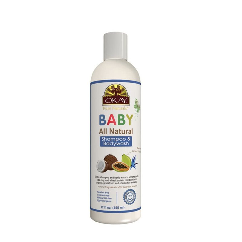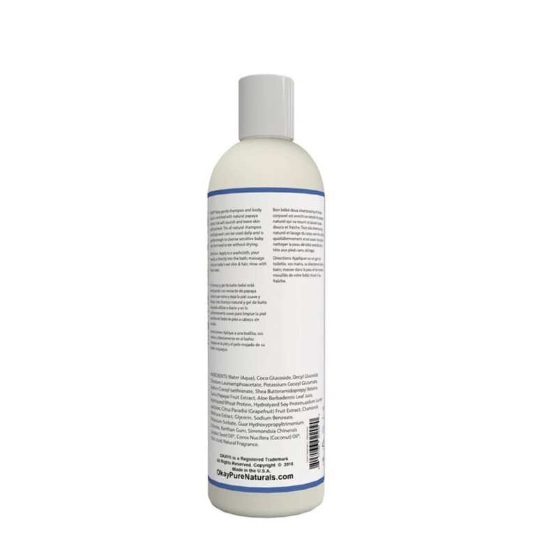 OKAY All Natural Baby Shampoo&Body Wash with Organic Ingredients Helps Gently Cleanse,Nourish,and Soften Baby's Skin And Hair Sulfate,Silicone,Paraben Free For All Skin&Hair Types Made in USA 12 oz