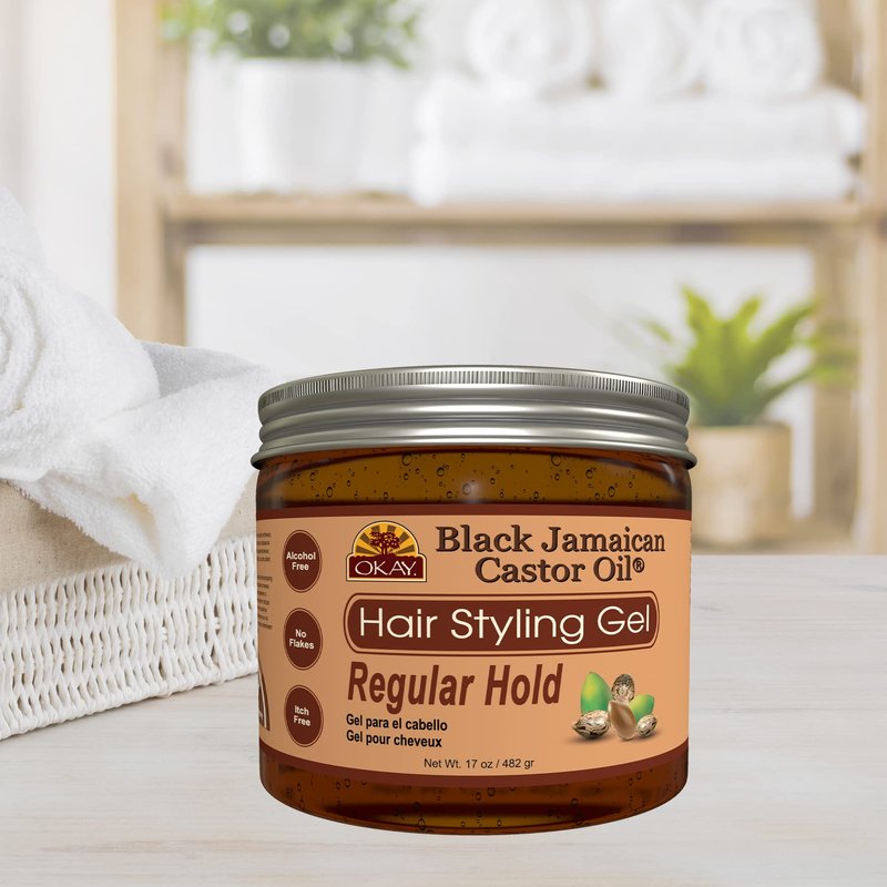 OKAY BLACK JAMAICAN HAIR STYLING GEL, REGULAR HOLD 17OZ