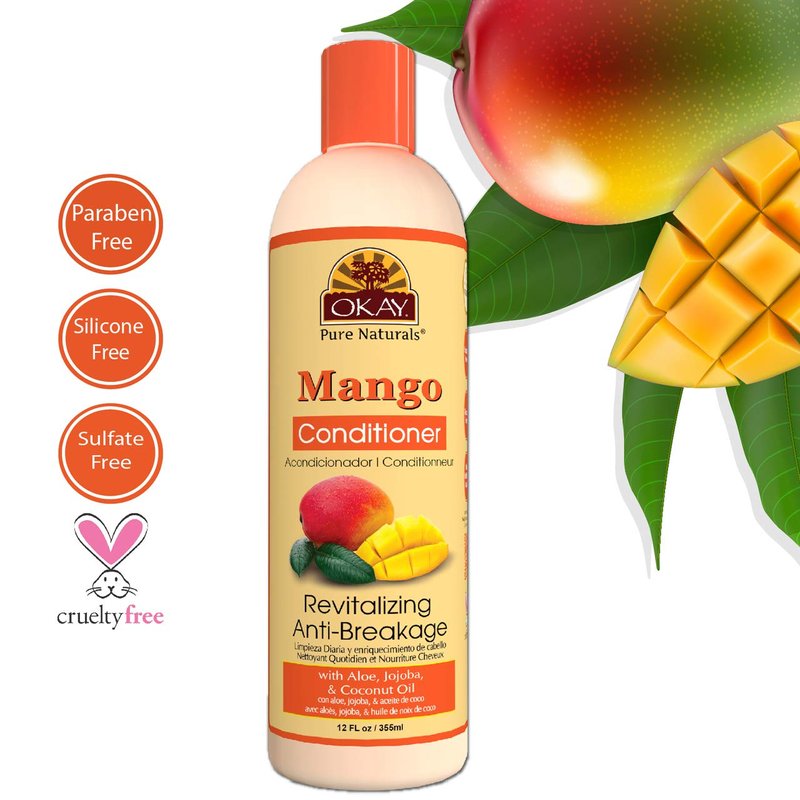 OKAY | Mango Anti-Breakage Conditioner | For All Hair Types & Textures | Revitalize - Repair - Restore Moisture | With Aloe, Jojoba & Coconut Oil | Free of Parabens, Silicones, Sulfates | 12 oz