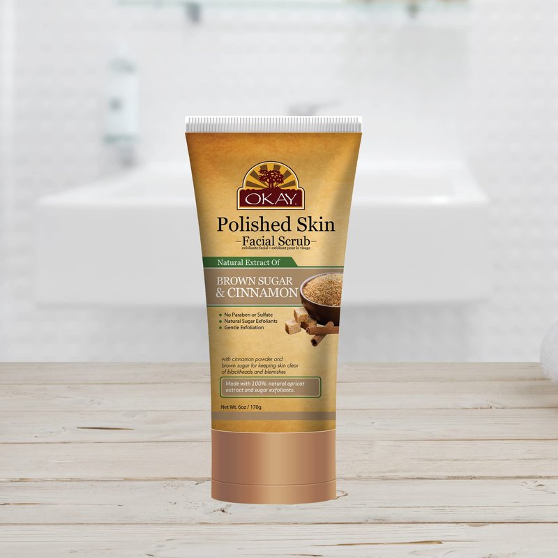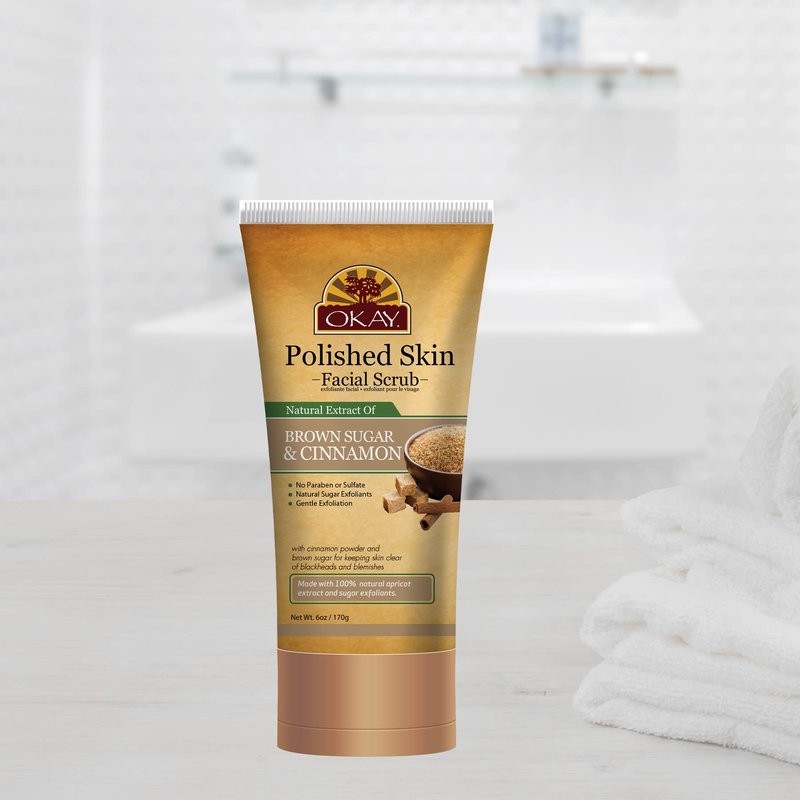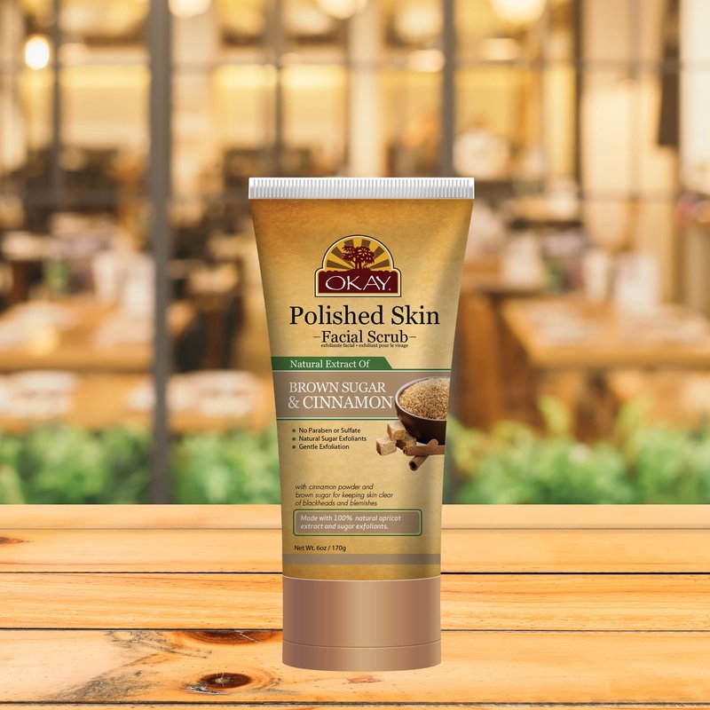 OKAY PURE NATURALS BROWN SUGAR and CINNAMON FACIAL SCRUB 6oz / 170gr