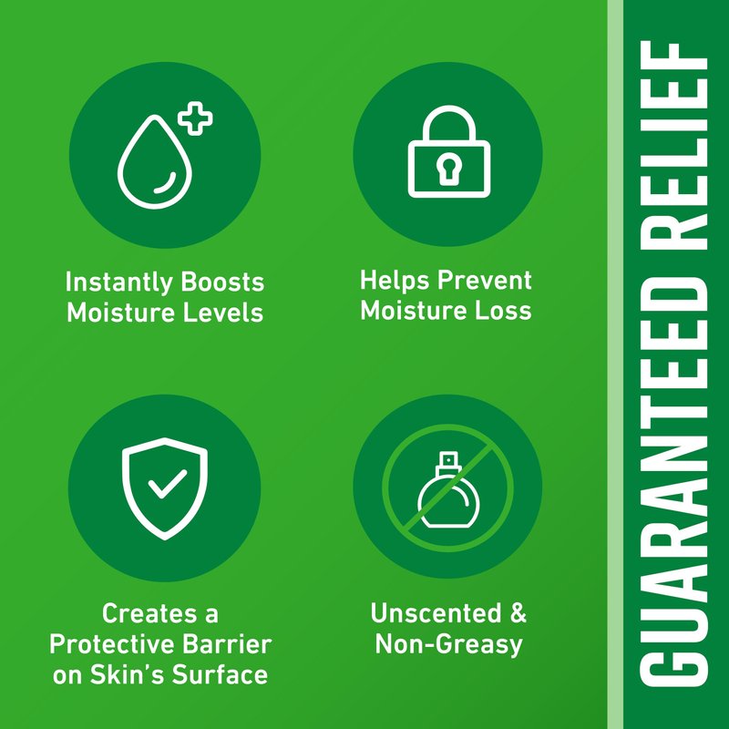- 48 Hour Dry Skin Relief. Creates a protective barrier on skin's surface.